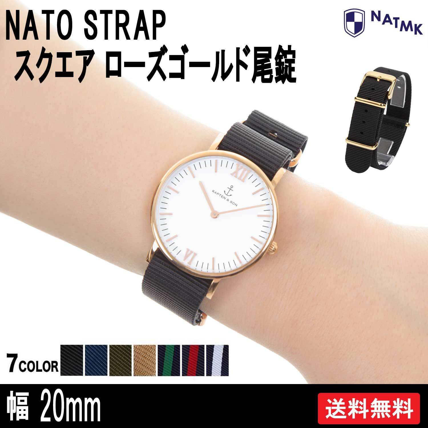 【形】NATOタイプ NATO STRAP NYLON【サイズ】長さ275mm(金具を含む)+/-5mm 幅 20mm +/-0.5mm(腕時計のベルト幅・厚さを測り適切なサイズをお選びください。)【色】ブラック / カーキグリーン / カーキブラウン / ローズゴールドバックル